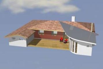 Vi valde att göra en modern tillbyggnad så att man tydligt visade en tillbyggnad i tiden som binds ihop med sextiotalsvillan med en lite vågad tak-kil med bandplåt. |