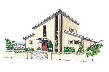 På uppdrag av Onsalavillan utformades ett modernt typhus med olika varianter i planlösningen.