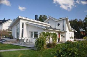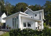 På en något sluttande tomt i Öjersjö fick jag uppdrag att rita en modern lite spännande villa.